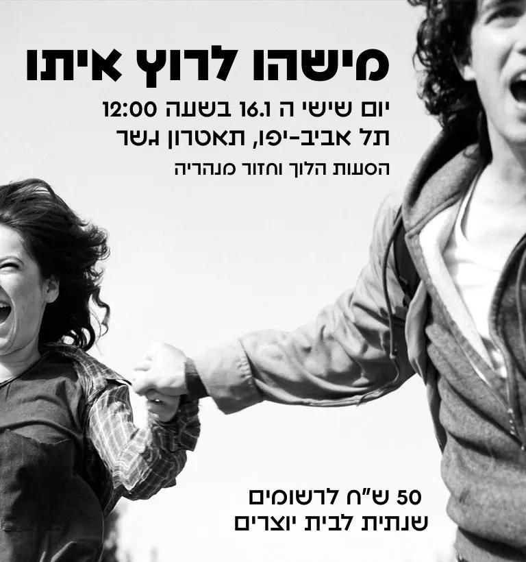 אנחנו שמחים לספר על הזדמנות מיוחדת: יציאה משותפת להצגה “מישהו לרוץ איתו” בתיאטרון גשר בתל אביב, כולל הסעה הלוך ושוב מנהריה.
